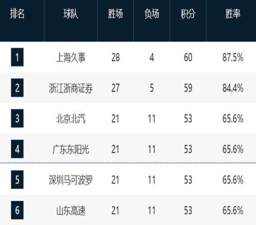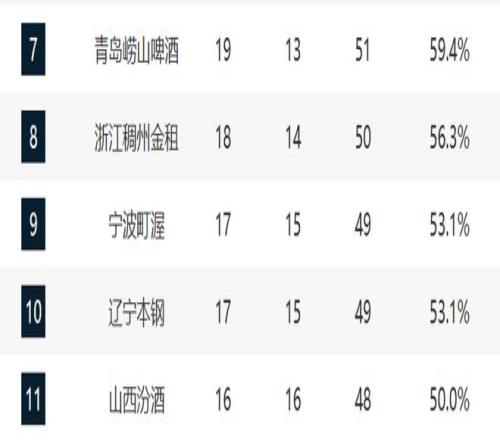 青岛和浙江排在第七和第八,他们这轮全部都取胜了,他们的排名没有动。而这两支球队最近10场的战绩都是6胜4负,不过他们目前的排名处于不上不下,基本上就这样了。