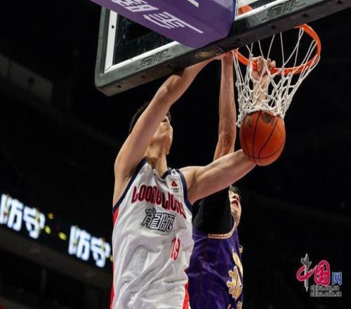 4月1日晚,2025-2026赛季CBA常规赛第33轮,北京控股男篮主场89比88逆转广州。图为广州队徐昕篮下暴扣。中国网记者 郑亮摄