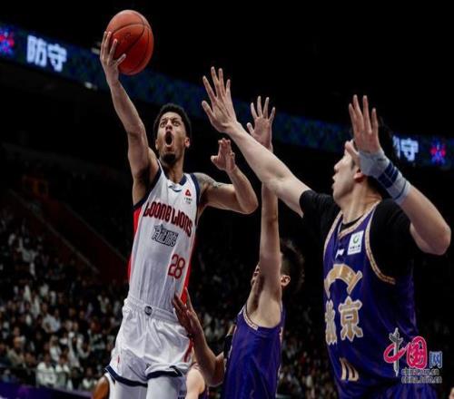 4月1日晚,2025-2026赛季CBA常规赛第33轮,北京控股男篮主场89比88逆转广州。图为北京控股男篮里勒突破上篮。中国网记者 郑亮摄