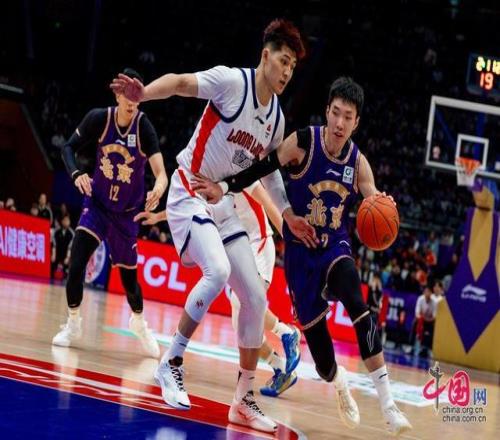 4月1日晚,2025-2026赛季CBA常规赛第33轮,北京控股男篮主场89比88逆转广州。图为北京控股男篮廖三宁突破上篮。中国网记者 郑亮摄