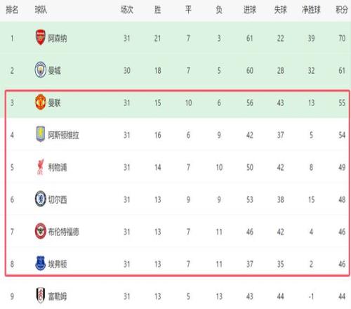 截至目前,除了阿森纳和曼城之外,曼联、维拉、利物浦、切尔西、布伦特福德和埃弗顿组成了争五集团,英超最后3个欧冠席位(欧战积分基本锁定前二,英超大概率有5个欧冠名额),相信将会在他们当中产生,其中曼联至少手握2大优势。